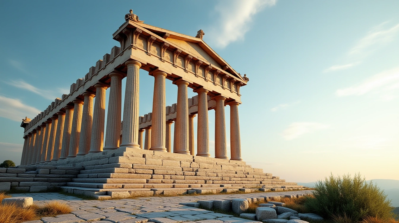 Dressé sur son rocher sacré depuis plus de 2 400 ans, le Parthénon demeure l'incarnation parfaite de l'architecture dorique classique. Ce temple dédié à Athéna fut édifié entre 447 et 438 avant J.-C. sous la direction de l'architecte Ictinos et du sculpteur Phidias, qui créa la statue chryséléphantine d'Athéna Parthénos haute de douze mètres.